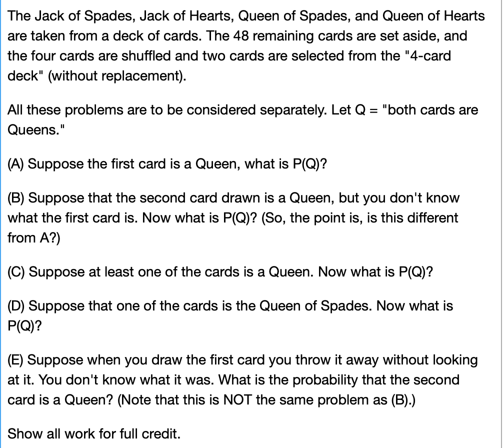 Solved The Jack Of Spades Jack Of Hearts Queen Of Spade Chegg Com