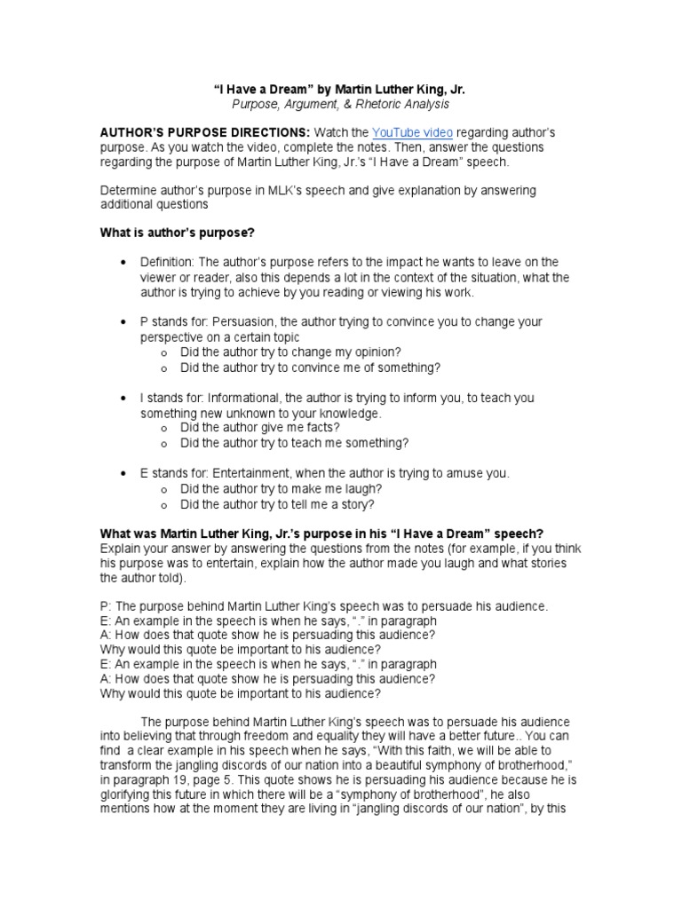 I Have A Dream Analysis Persuasion Martin Luther King Jr